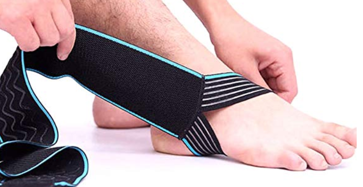 Whether you choose a designated ankle support, wrap-around strap or a tubi-grip, some sort of compression device is fundamental, especially when you’re on the move. I recommend a stronger ankle support initially, changing to a tubigrip later. If you’re struggling to find anything decent, then a doubled over tubigrip provides more support than a single layer.