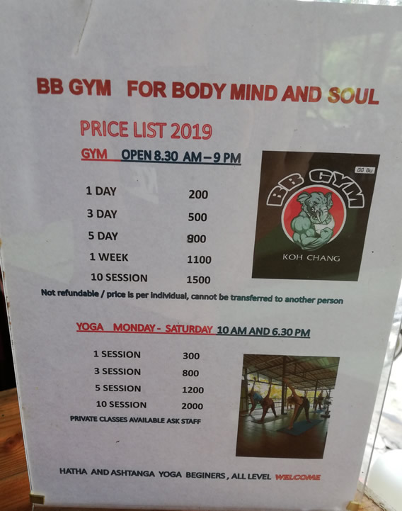 All in all, BB Gym Koh Chang is a great little gym with friendly staff and plenty of floorspace, thanks to the yoga studio. The pricing is a little expensive if you’re on a budget, but in line with what you would normally pay on a touristy Thai island and a similar price to other gyms in Koh Chang. It’s the only gym on Lonely Beach that I found and it does the job!