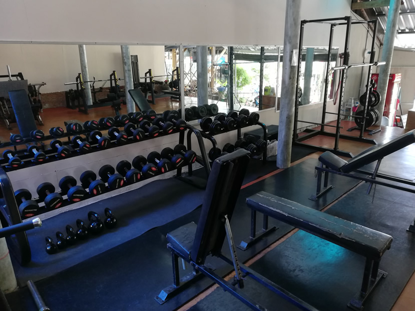 BB Gym Koh Chang has dumbbell freeweights up to 35kg, with some duplicates; there is a full weights rack in pounds (up to 50lbs) and another in kilograms at the heavier end of the range.