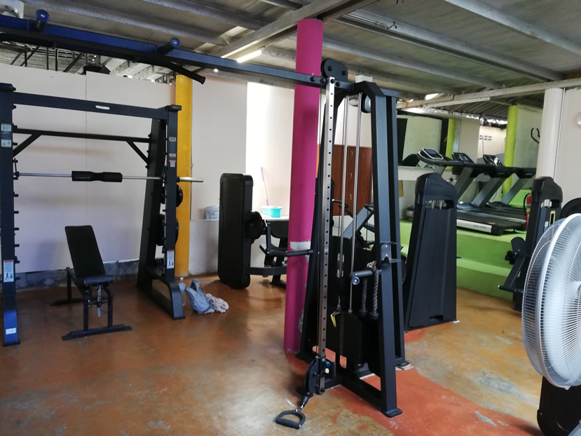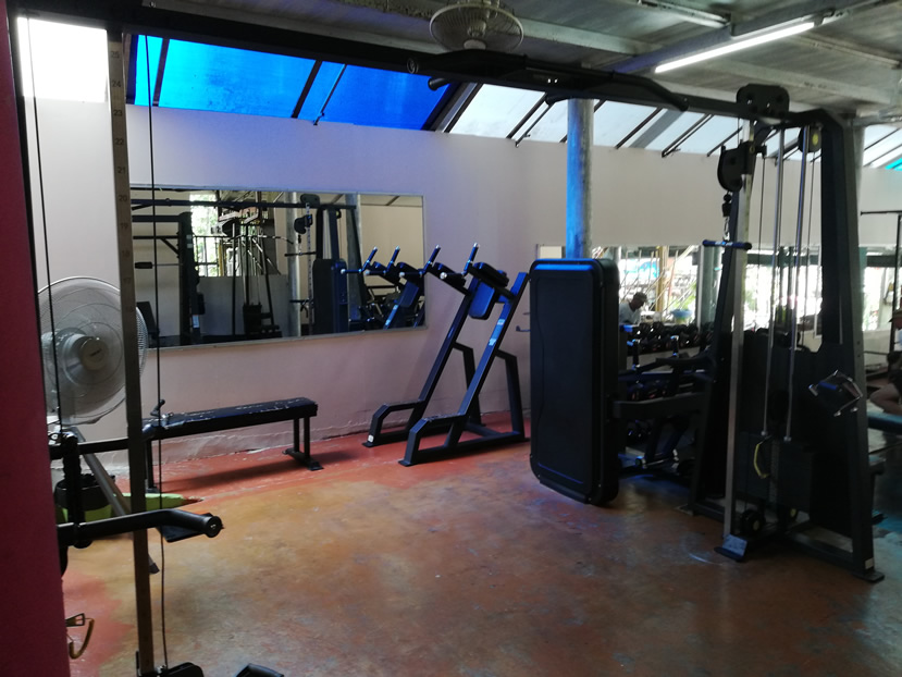 The facility comprises a fairly small gym and a sizeable yoga studio upstairs. This Lonely Beach gym is open at the front and is cooled by ample fans, both overhead and from the wall. It was a comfortable temperature when I trained at 11:00, despite being very hot outside.