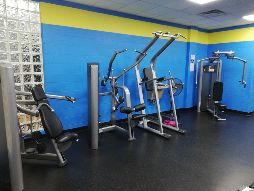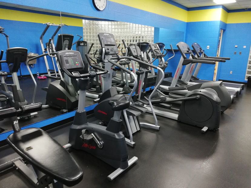 Cardio equipment consists of one bike, one stepper, two elliptical trainers and two treadmills.