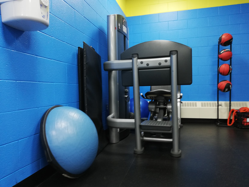 Functional training equipment includes medicines balls (from 2 – 12lbs), a BOSU, a Swiss ball, kettlebell and a box with various small gym toys, including resistance bands. You’ll find two mats with a little room for floor space – or a lot, depending on how busy the gym is.