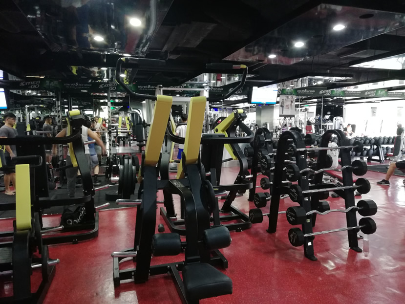 Note, there are a couple of California Fitness Hanoi clubs around the old quarter. The one I’m at is level with the bottom of Ho Hoan Kiem Lake, a few hundred metres directly west of it. The entrance is unmissable on the corner of two streets and marked in big letters. Go inside, to the right and up the escalator (unless you’re stopping in the coffee shop first, that is). You’ll need to go up a couple of floors to reception. The fitness facilities are on the two floors above reception.