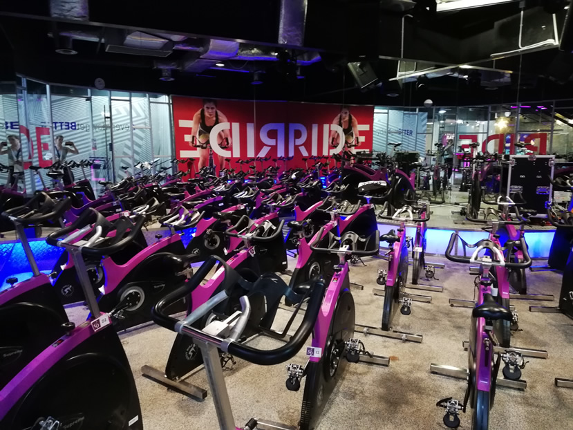 The yoga studio contains Swiss balls, mats and TRXs, and there are no prizes for guessing what the Spinning studio contains!