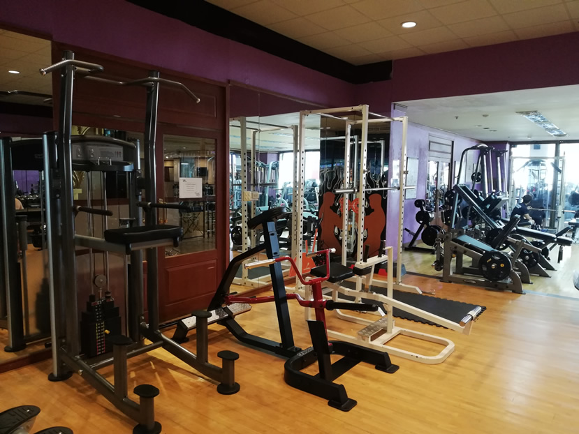 Additionally you’ll find a large attractive studio for classes and a Spinning studio, also with aircon. Outside of the gym, some extra equipment features. I’m not sure if it’s faulty and awaiting repair or just couldn’t fit inside. (It looks a little older than some of the rest of the equipment).