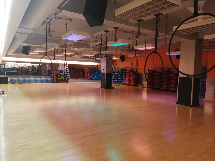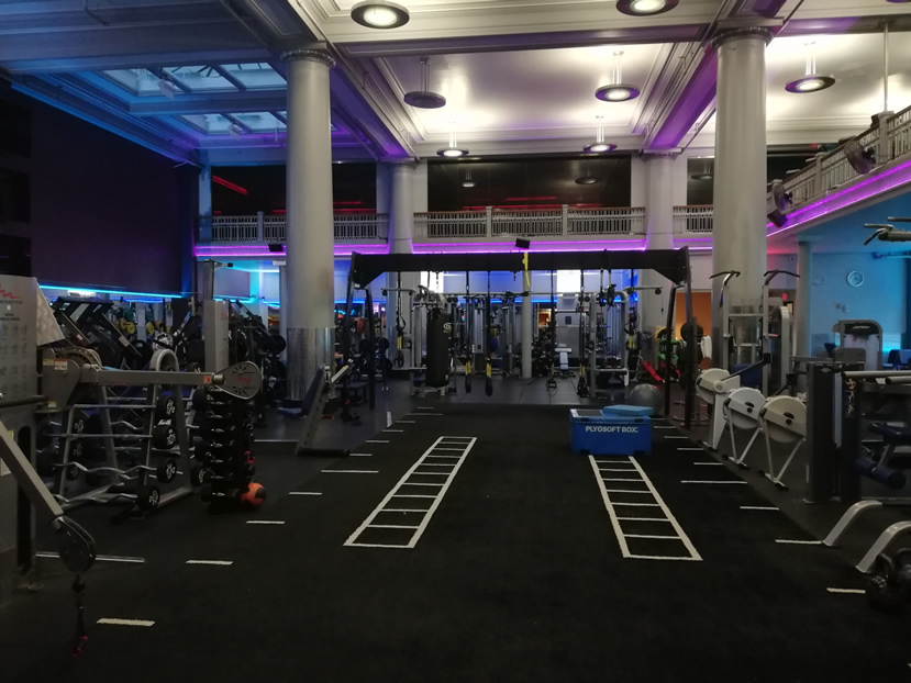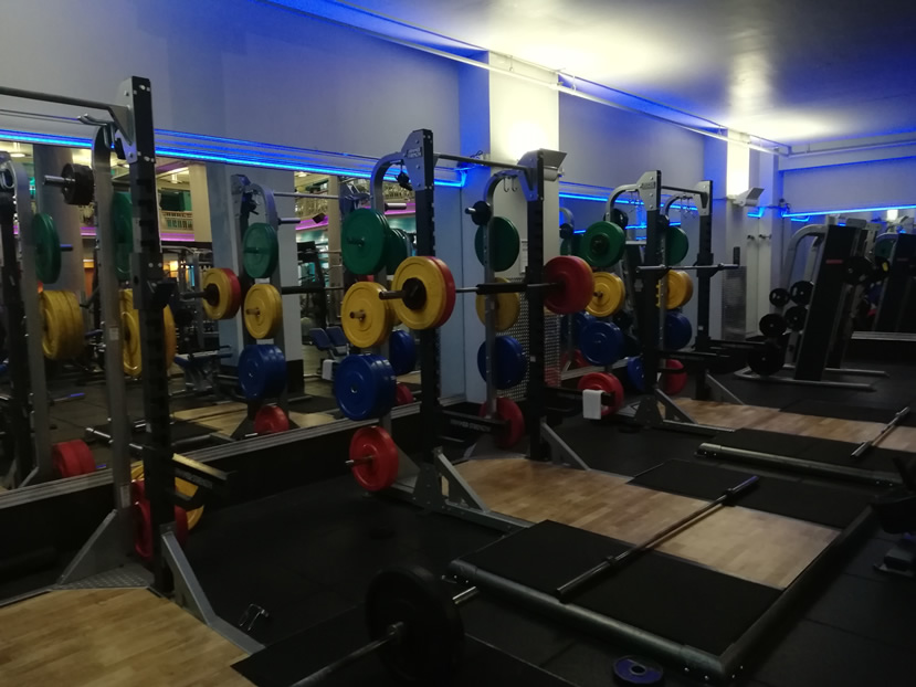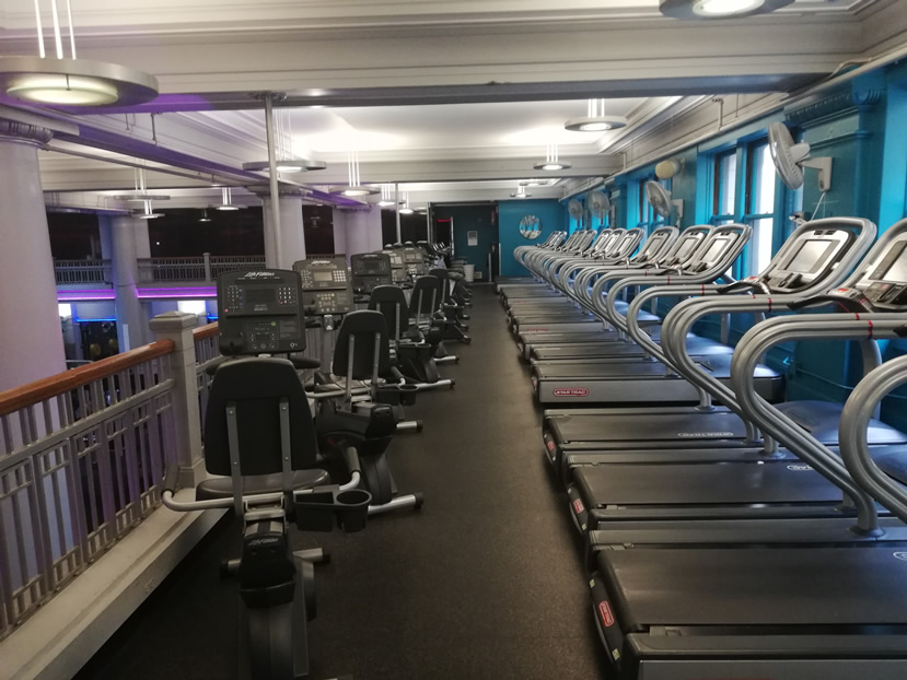 Both dumbbells and barbells go up to 100lbs, with plenty of dumbbells in the lightweight range as well. There is a dedicated fully-matted floor area with BOSUs and Swiss Balls and a long functional training area with plyoboxes, TRXs, kettlebells, a range of medicine balls and resistance bands. The gym toy box consists of foam rollers, (abs) rollers, blocks, boxing gloves and pads to name a few. There is a boxing bag in the main gym area. You’ll also find several squat racks and a Smith machine – load as much as you like.