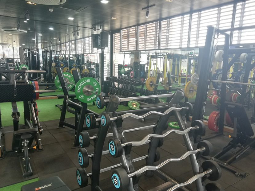 This extremely attractive facility is brand new, colourful and as gyms go, pretty stunning! I was told it had just opened a month ago in June 2019. The gym is medium sized, offers free towels and water and key operated lockers. There are a couple of toilets and shower, naturally all in pristine condition at this new facility. You’ll also find a sauna and steam room; these are found in the changing rooms, ie single sex.
