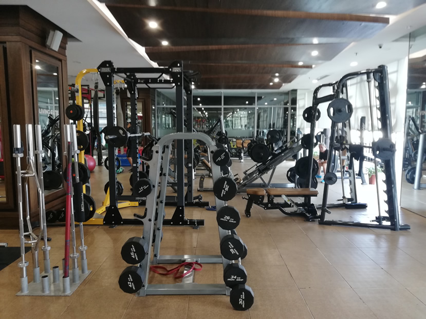 The gym is broadly divided into cardio, resistance machines, functional training and free weights. You’ll also find a Spinning studio, yoga studio and regular studio. The aircon works brilliantly and is set to an ideal temperature.