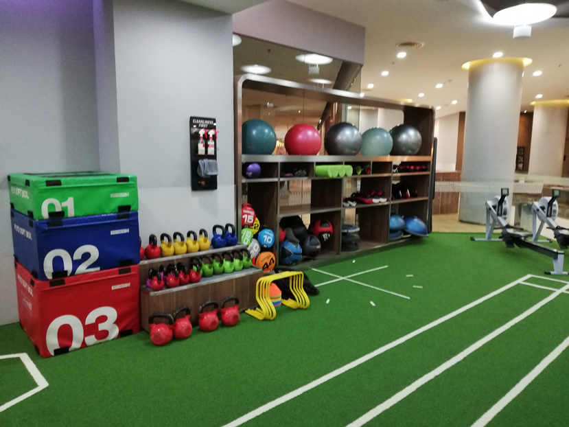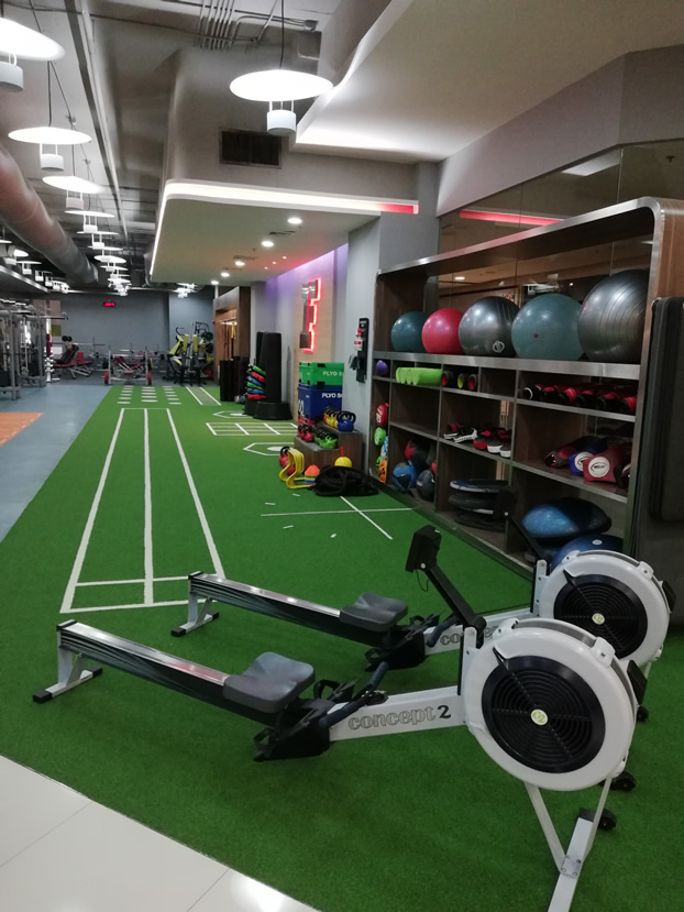 In addition to the usual areas for cardio, free weights and resistance machines, there is ample floor space including an astro-turf area, where you’ll find numerous gym toys, including TRXs, a range of medicine balls up to at least 9kg, wall balls, foam rollers, BOSUS, battle ropes, boxing gloves, pads and punch bag, core bags up to 44kgs, mini-hurdles, Swiss balls and numerous kettlebells up to 20kg. They also had some of the nicest mats I’ve seen for a while!
