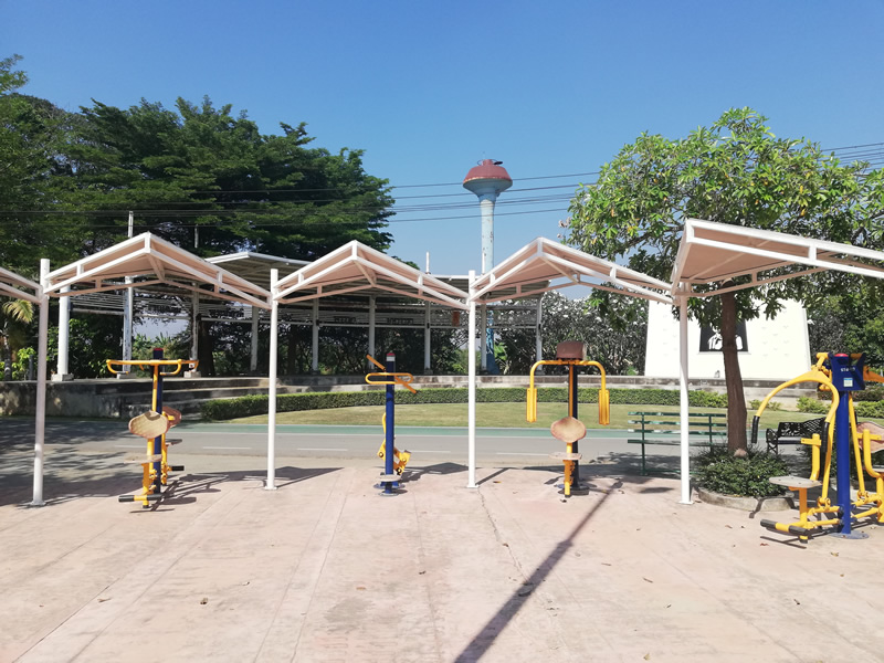This outdoor gym is located around 2km south of the Kanchanaburi Railway Station, just over the bridge heading west. Regardless of whether you use the Fitness Park or not, it’s well worth visiting the bridge for pretty views of the river and temple there!