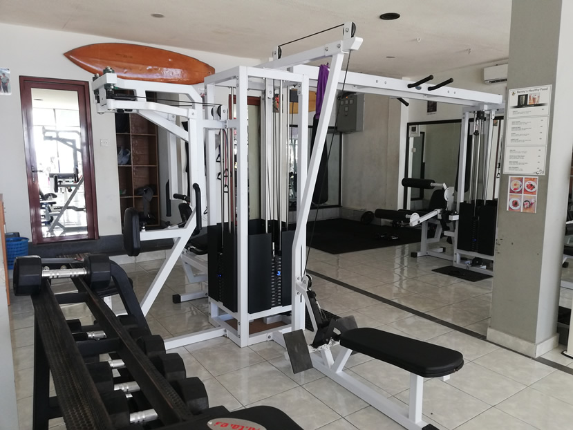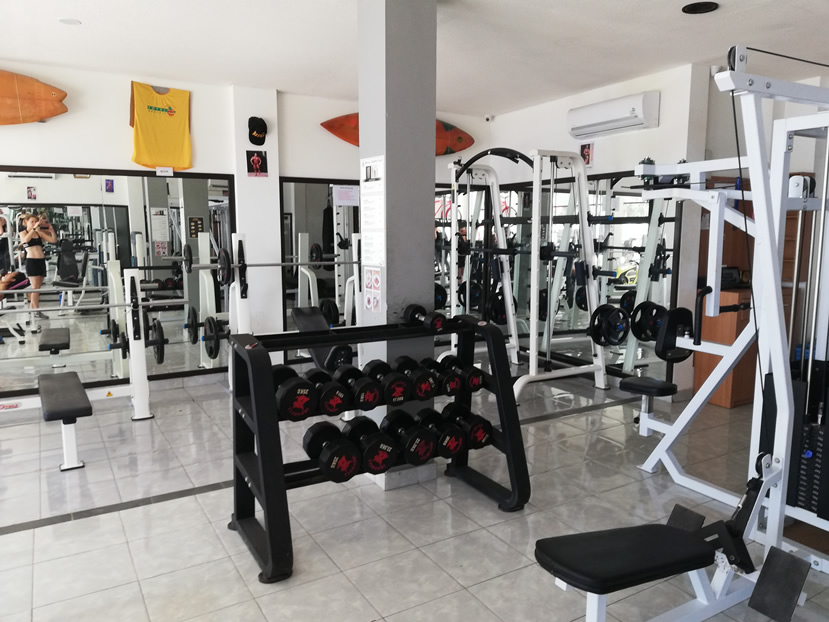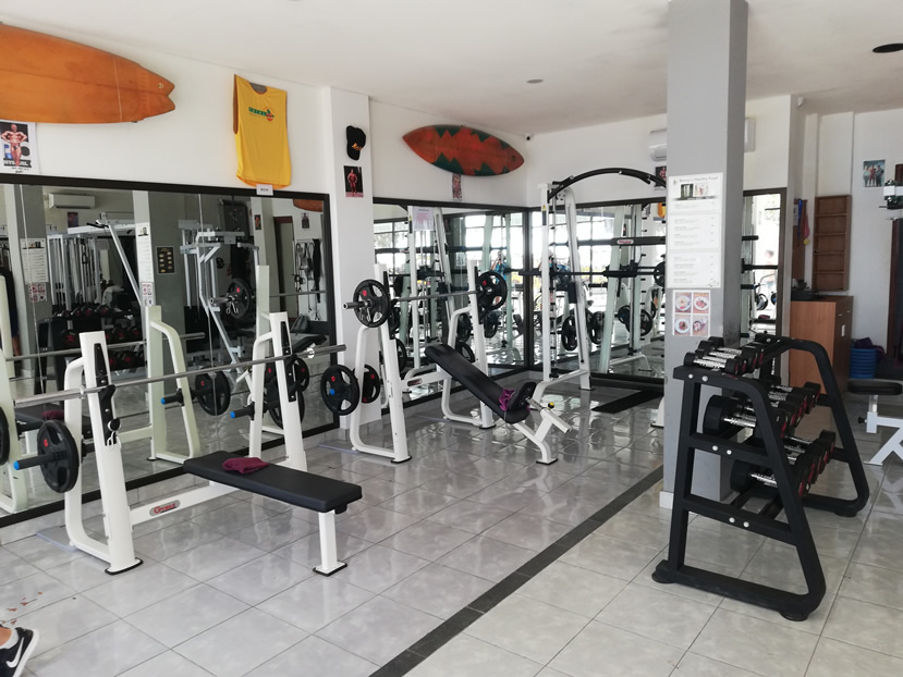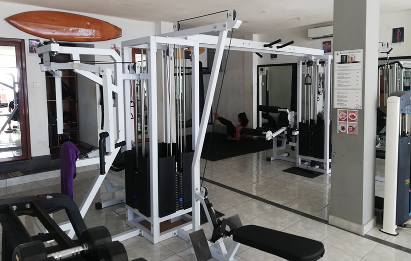 Gili Tropica Gym has a good mix of free weights and resistance machines. You’ll find a full rack of dumbbells from 2.5 – 25kg, as well as a couple of adjustable barbells – one straight and one curled.