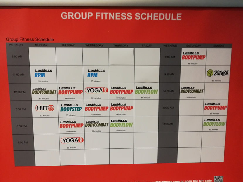 The studio offers a range of classes, totalling around twenty per week, most of which are Les Mills classes. The studio looked to be in excellent condition and well-equipped from outside; I witnessed the start of a well-attended Body Pump class.