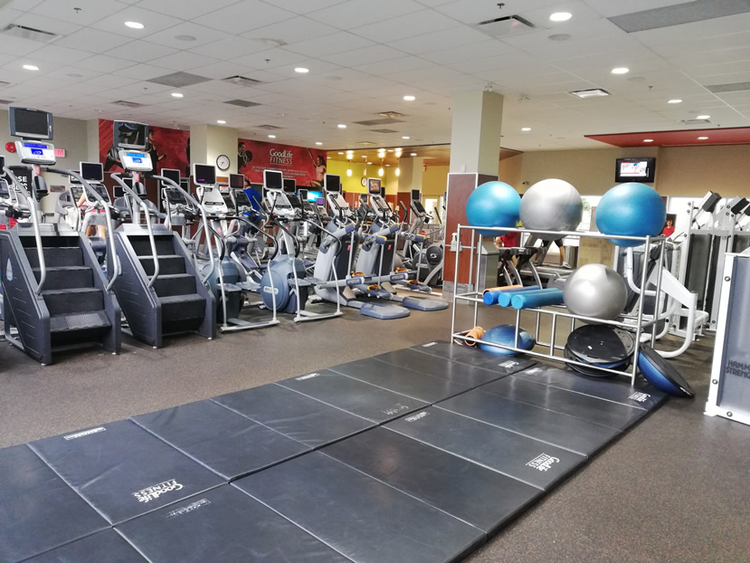 GoodLife Fitness Victoria Bay Centre is located on the fourth floor of The Bay Centre shopping mall in downtown Victoria. And unless you fancy an extended warm-up, walking around the outside of the mall like I did, the simplest way in is through the entrance at Douglas Street. The gym is then at the back of the building on the left, and the simplest way to get up to it is via an elevator/lift at the back of the building on the right. When exiting, select floor two and head towards the front of the building for the exit. (I selected floor one and then had an interesting conversation with shop staff as to how to get out – “there was a door here when I arrived” – oops!)