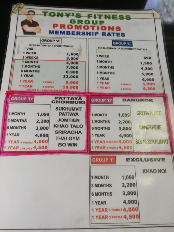 I went to enquire about rates and was presented with a chart by staff who spoke v little English. The chart covers clubs in various regions of the country, see group D in the image above for Bangkok.
