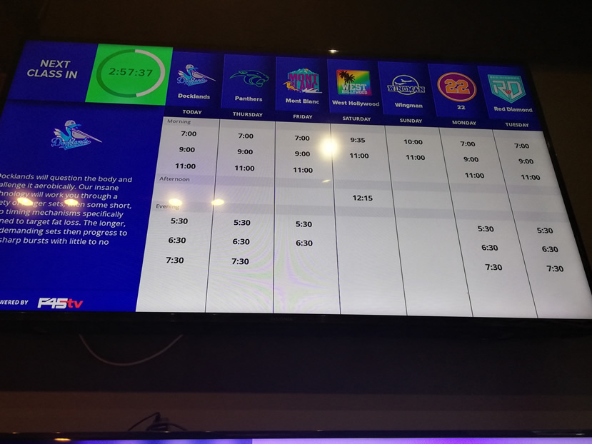 Otherwise, continue down to the end where you’ll see F45 clearly marked (see image) and their class timetable on display on screen.