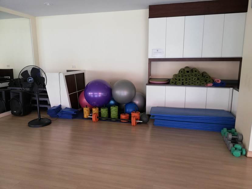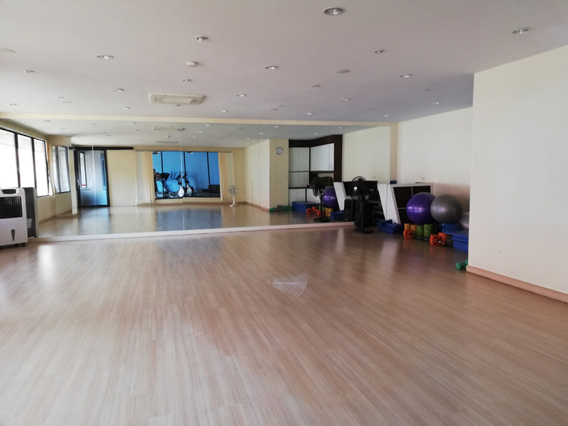 The club has a large attractive studio, in which there are currently 18 classes per week. These take place from 10:00-11:00 and 18:00-20:00 most days. Classes include Dance Workout, Zumba Dance, Hip Hop and various types of Yoga. The studio also contains several Swiss balls, lots of good quality thick mats as well as yoga mats. You’ll also find lightweight dumbbells and disc free weights for barbells.