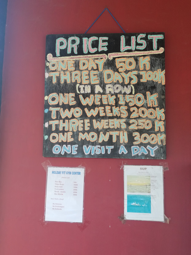 Gili Tropica Gym was the best gym on the Gilis that I found, and I expect it is the best gym available on the Gili Islands. The other major gym on Gili Trawangan was closed for the forseeable future, having a revamp when I enquired. For the other gym on Gili Air, see: