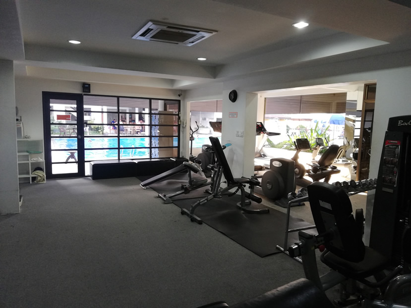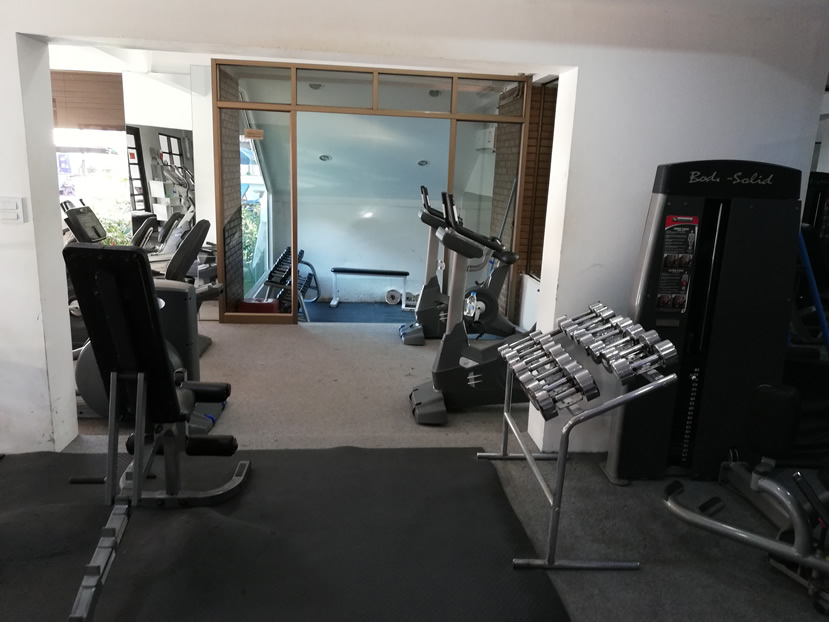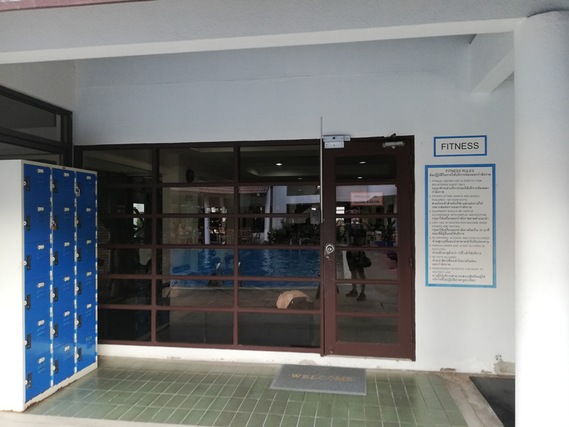 The gym entrance is not visible from the main road, but turn right (if approaching from the centre of Hua Hin) into the street and you’ll shortly be able to see the pool on your left. Keep walking past it and then turn left into the main entrance there and pay at reception. The sign states 80 baht per day, but it’s only 30 a day just to use the rather attractive pool if you have less gym-inclined friends and family!