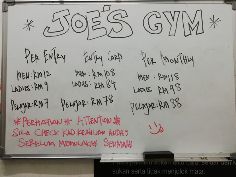 All in all, Joe’s Fitness Gym a great little gym which makes good use of its space. I was particularly impressed to see an assisted pull ups machine here. As the only gym I could find in the Cameron Highlands, it’s not unreasonably priced given that this is a touristy area, though it would be fairer if the price was the same for men and women.