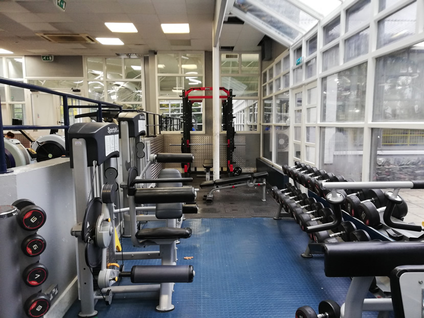 Weights equipment includes a rack of dumbbells ranging from 5kg to 40kg, along with a few lightweight dumbbells. There is an adjustable barbell (curved) and tricep bar, along with one squat station with a bench, which includes pull up bars. There is also a handful of resistance machines, including leg extension/curl, a lat pulldown and assisted chin ups.