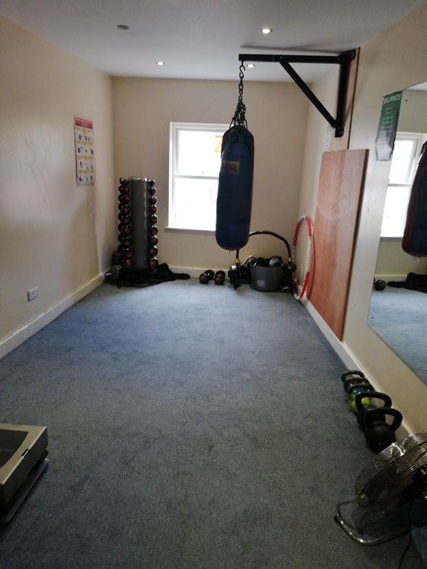 In it you’ll find lightweight dumbbells from 1-10kg, a hoop, 5 kettlebells going up to 16kg, medicine balls from 1-5kg, some abs rollers and foam rollers. There’s also a few Swiss balls, battleropes and a handful of mats.