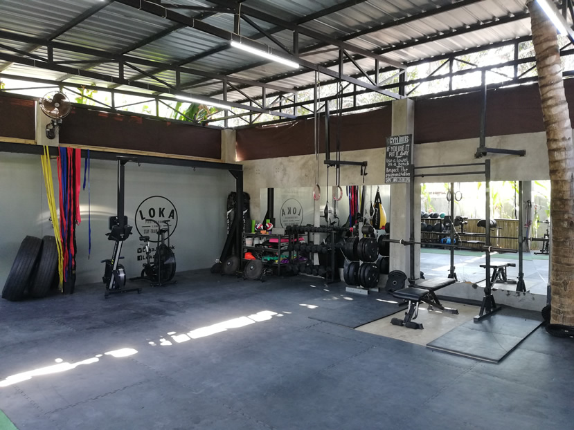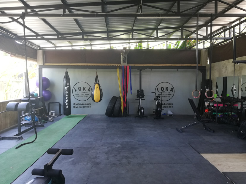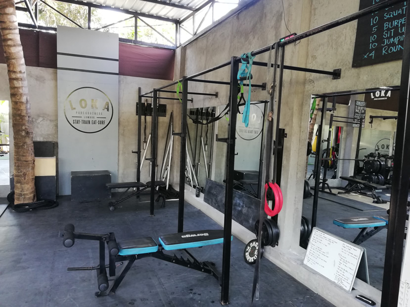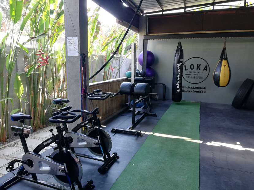 Loka Gym Lombok is located close to the centre, about an 8 minute walk north of the main intersection where Fresh Market is. It’s clearly labelled on Google Maps and there’s a big sign outside it. You won’t see the gym from the street, but if you venture into the cafe (where the sign is) and walk straight through it, you’ll find the gym round the back to the left. If there’s no-one obvious to pay, speak to the friendly cafe staff.