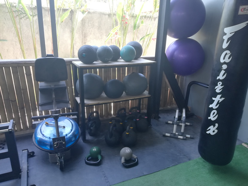 This modern gym in Lombok looks pretty cool! Friendly Aussie owner Matty talked about how he developed it over an 18 month period and opened it around 18 months ago. This small to medium-size open-plan gym specialises in functional training. The main focus of classes are HIIT, Strength and Muay Thai Boxing.