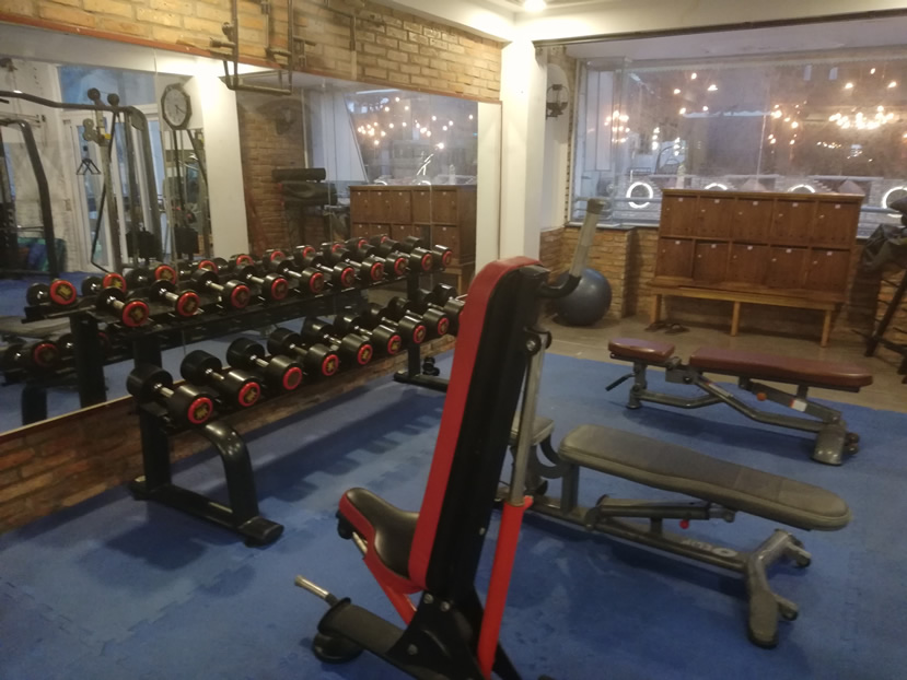 There are a few resistance machines too which also include a bench press, leg curl and leg extension. You’ll find an inclined abs bench and hip extension bench and a fair number of disc weights which might make up for the dumbbells!