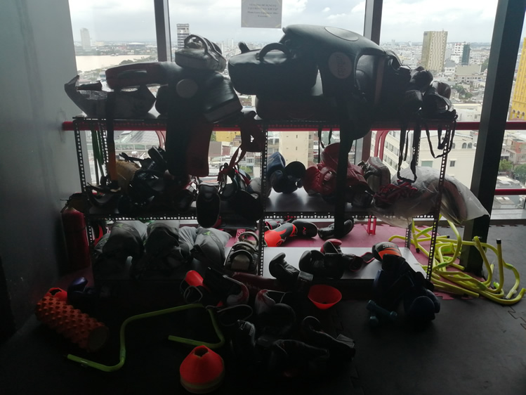 In terms of providing “regular” gym equipment, MMA Gym Danang makes a reasonable contribution with its functional training area. The rig looks new and has pull up bars (in addition to the overhead monkey bars), a squat rack on one end, TRXes and a set of tyres hanging together from it. Looks like a type of punchbag but correct me if I am wrong please!