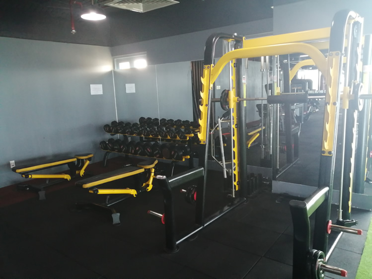 For your lower body, you’ll find a Smith machine, squat rack and three resistance machines. These comprise a leg extension, leg curl and an ab/adductor station.
