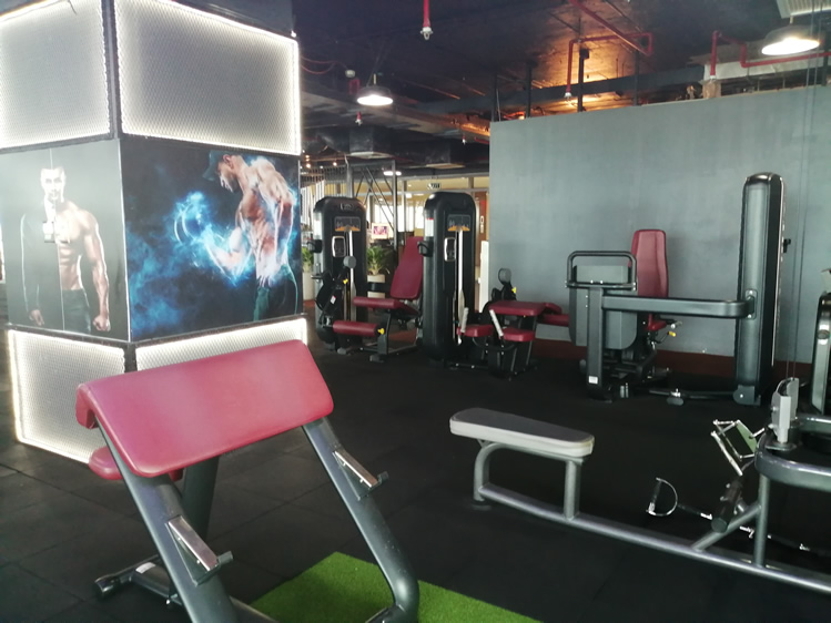 Benches include an inclined abs bench, hip extension bench and a few regular benches.