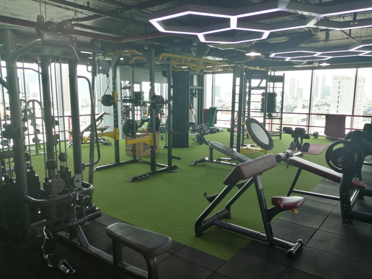 The changing rooms are small and cooled by fans. You’ll find some lockers, two showers and a room with a sink in it. Where’s the toilet, you ask? I asked the same thing (one of the few Vietnamese words I actually know!). It’s outside the gym, but still on the 12th floor, not far from the entrance (turn right as you exit the gym).