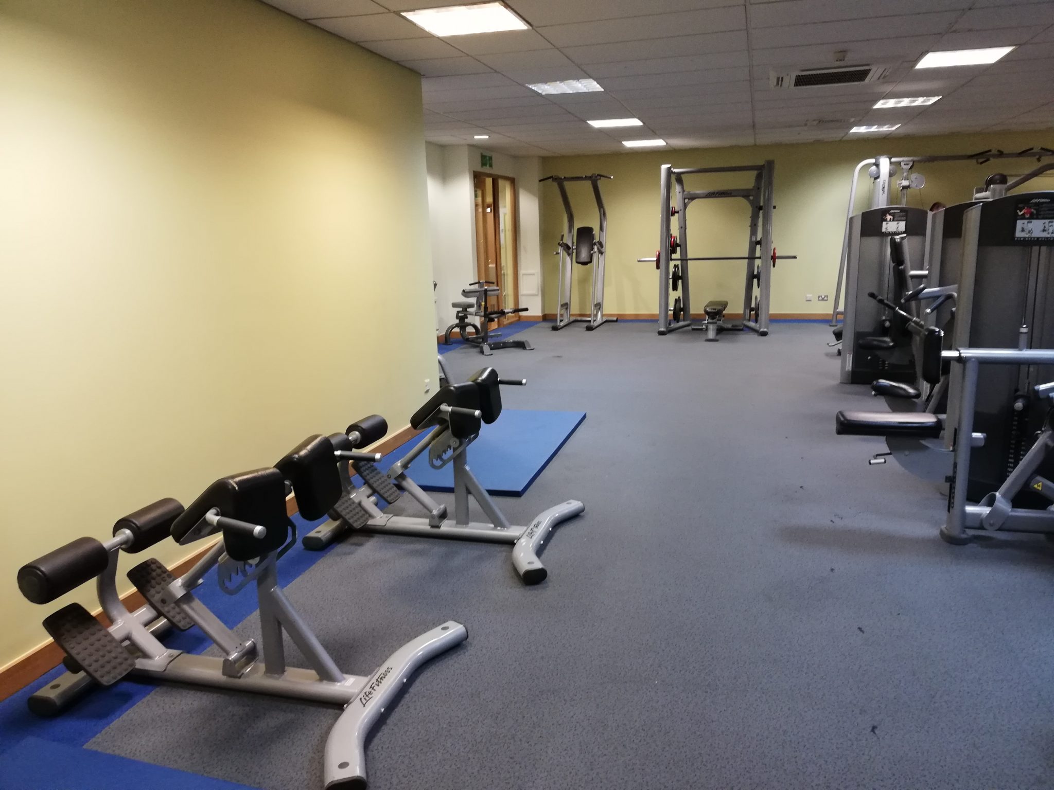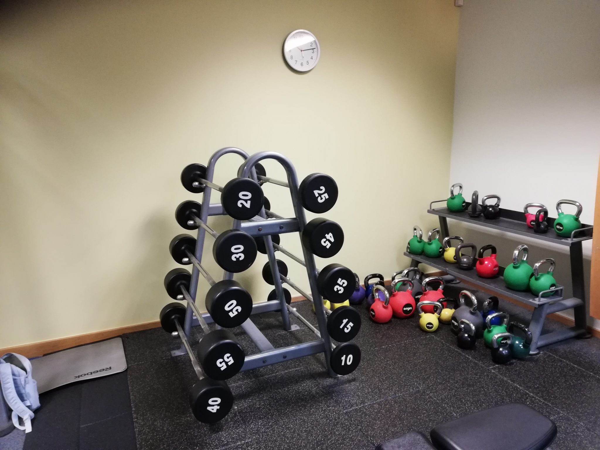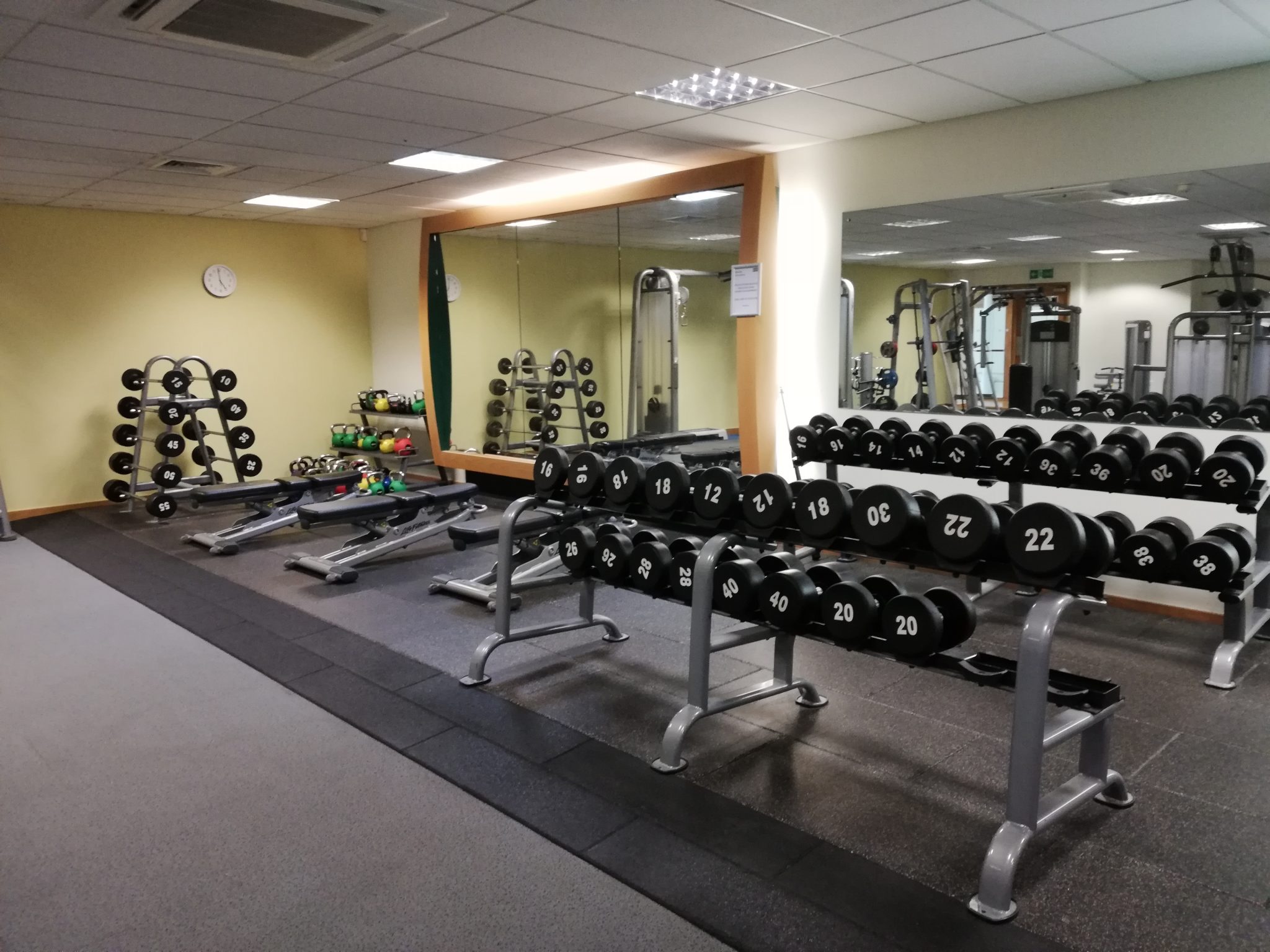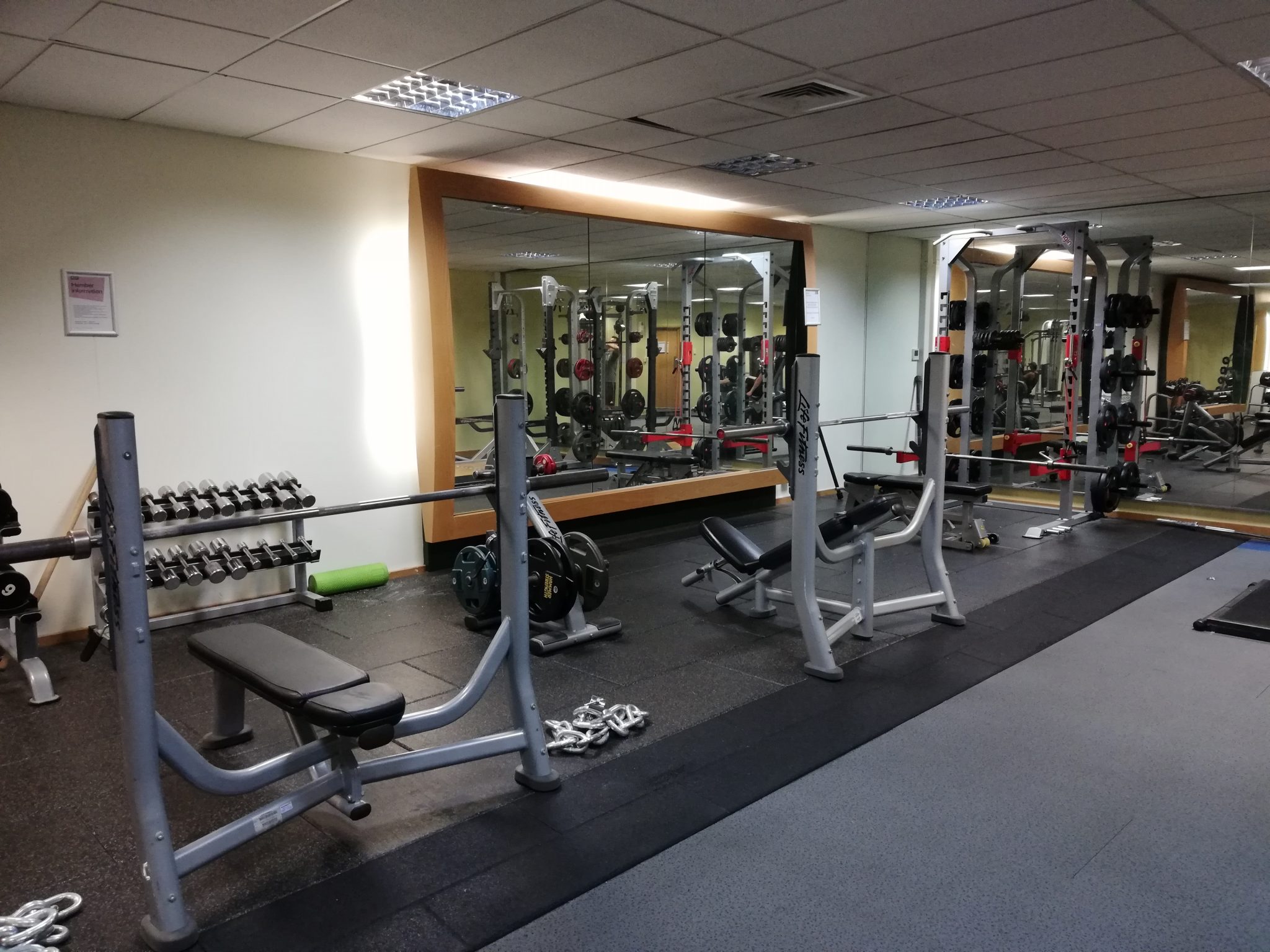 The weights room is also large and well equipped with dumbbells up to 40kg. This includes many in the lightweight range, barbells up to 55kg, a huge range of kettlebells including multiple duplicates and a number of resistance machines. There are several sets of chin-up bars, a resisted pull-ups machine and a couple of squat stations.