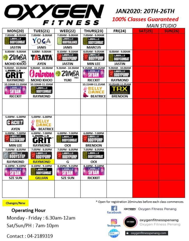 Currently, Oxygen Fitness hosts around 32 classes a week in the group exercise studio, 10 Spinning classes and 14 Yoga classes. The group exercises classes include BodyCombat, BodyPump, BodyStep, BodyBalance, Grit, Zumba, Sh’Bam, Tabata, Belly Dancing, Circuits and Salsation.