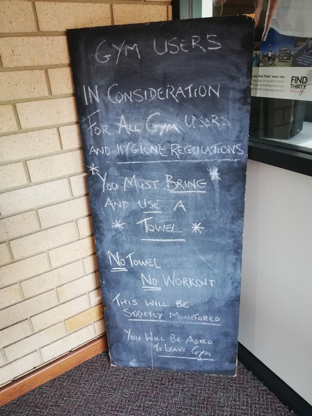 Note, signs on the gym door currently state that showers are not available.