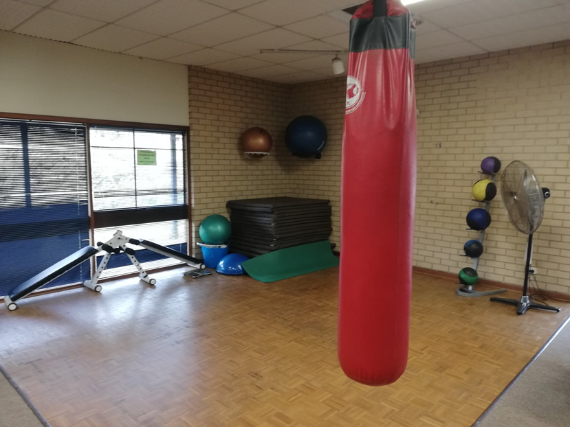 You’ll also see a good range of boxing equipment, including a large punchbag, gloves and pads.