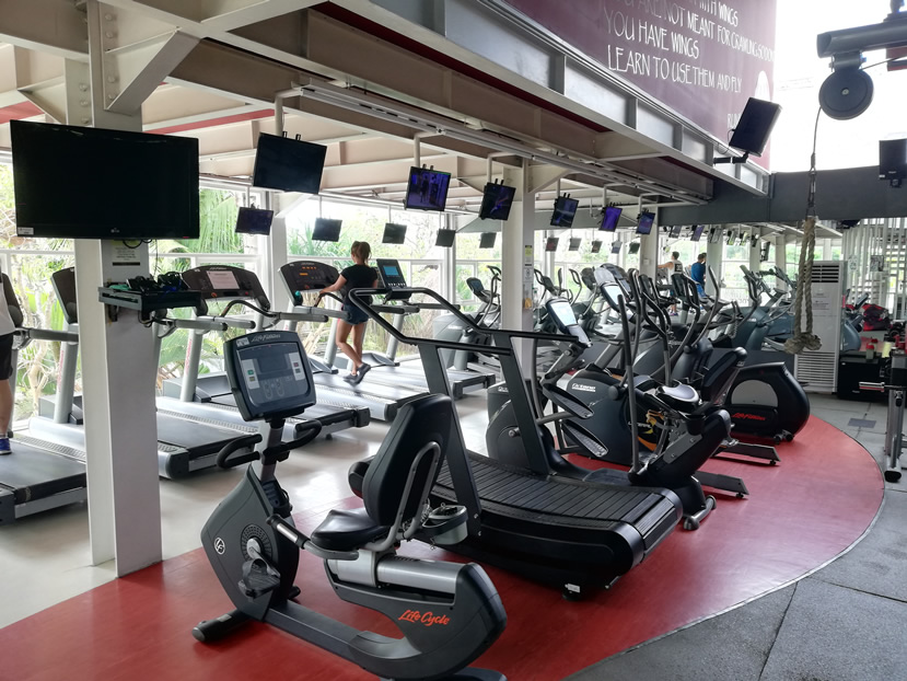 Rai Fitness Sunset Bali hosts around 44 classes per week in one main studio, a yoga studio and a Spinning studio. Seven of the classes are Spinning classes held in a dedicated Spinning studio and the bikes all looked brand new.