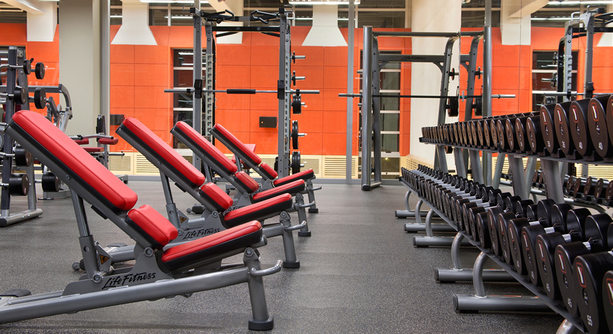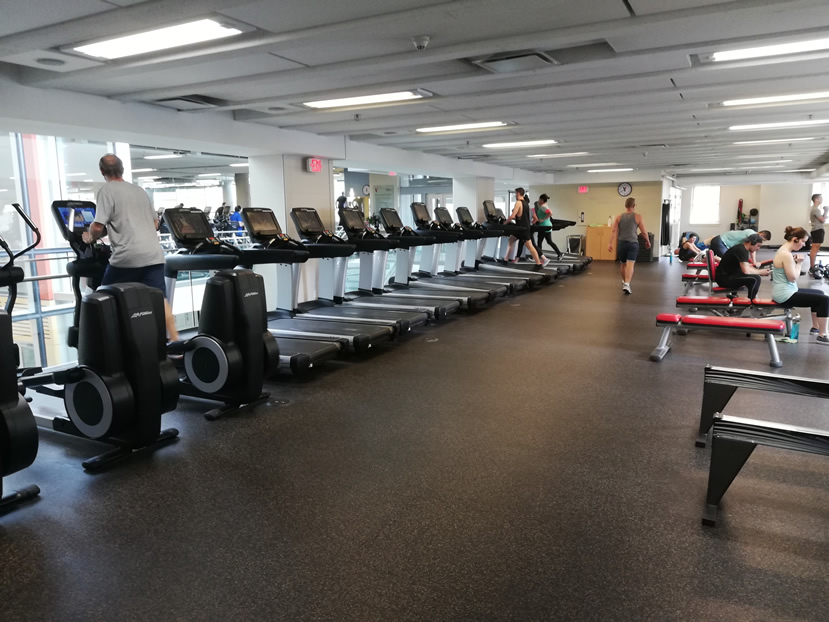 This is the main gym and it contains the bulk of both the cardio and free-weights equipment. The wide range of cardio equipment consists of treadmills, ellipticals, various bikes, stair climbers.