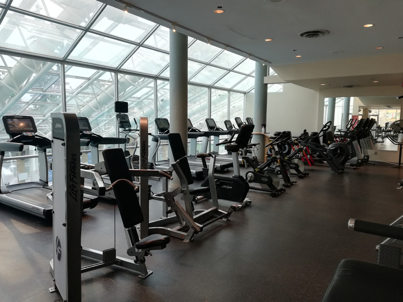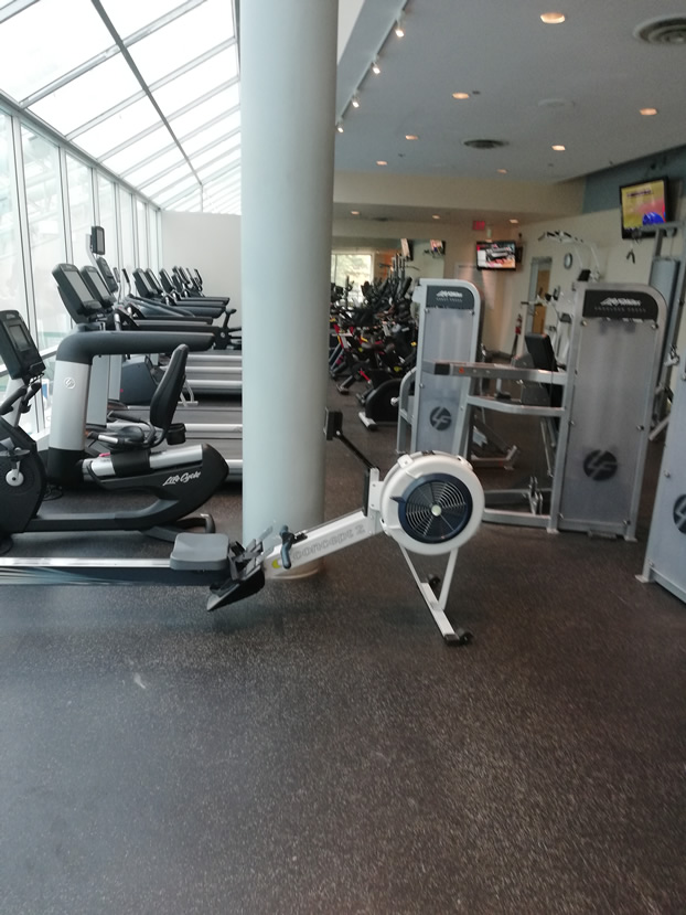 The gym offers a good range of cardio equipment. These consist of five treadmills, four ellipticals, three bikes plus three spinning bikes, one Arc trainer and one rowing machine.