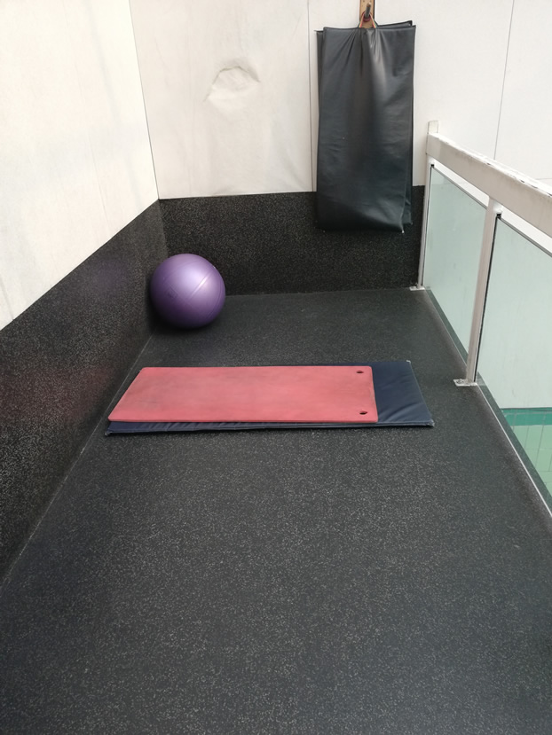 Everything is well spaced out, and there’s even a (very small) room just outside the gym overlooking the pool with a Swiss ball and a mat for floor work. However this room is not air-conditioned – it’s effectively in the pool area. But you will find sufficient space in the gym where you can do floor work and several mats are available.