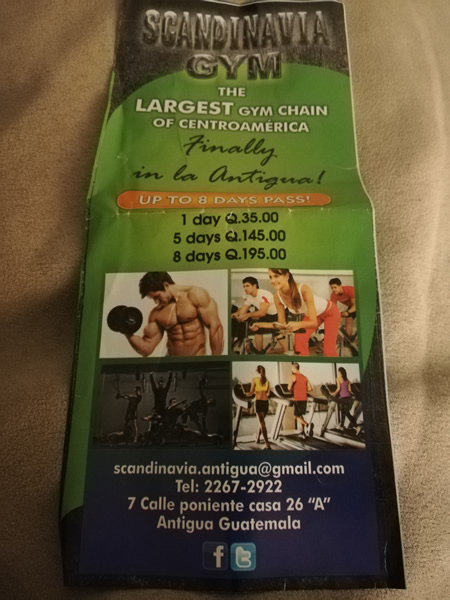 Overall Scandinavia Gym Antigua is very good value for one session, and the same price as Antiguas Gym up the road which is a bit smaller. Scandinavia Gym has more floor space, is easier to navigate and probably has a greater range of equipment. However Antiguas Gym is notably cheaper if you’re staying a week or so, at only Q.110 and had everything I needed. Personally I preferred it as it had a bit more character and a less clinical feel to it then Scandinavian. Both gyms are good and just a few minutes walk apart – worth asking to look around both before deciding if you’re planning to spend long in Antigua.
