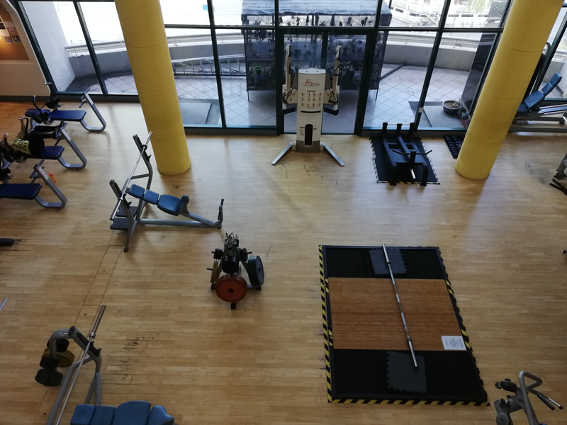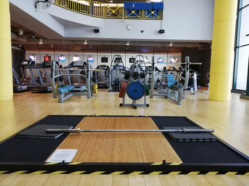 For your legs, you’ll see two squat racks and a Smith machine. But what takes centre-stage here is the dead-lift platform in the middle of the room! All in all, an excellent range and number of weight-training equipment.