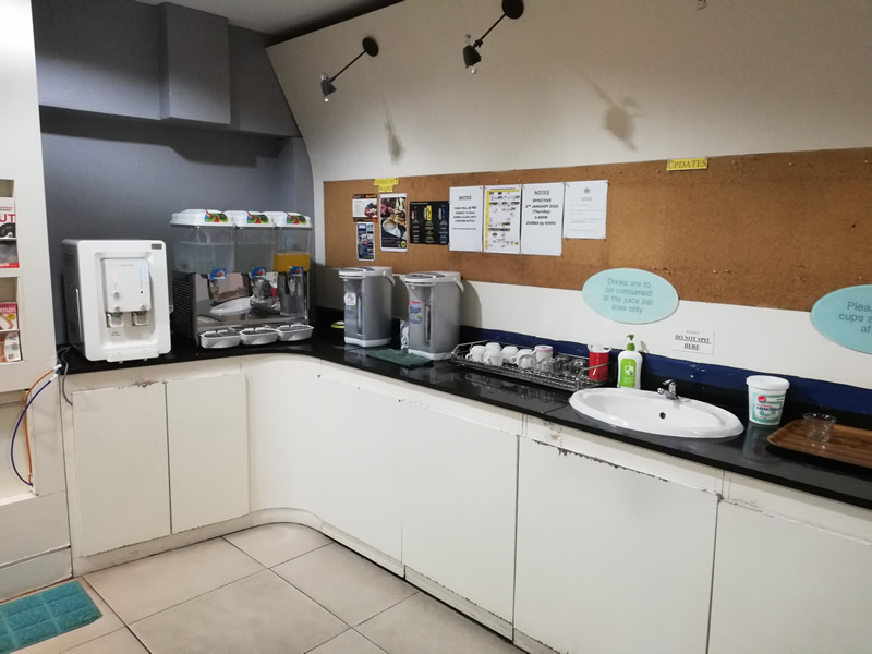 Free water is provided, but it doesn’t end there! In addition to both hot and cold water, you’ll find an actual kitchen-style area where you help yourself to tea, coffee and juices! For a moment, I thought I was in Fitness First! There’s a seating area here too, so you can chill out after your workout – this is all upstairs.