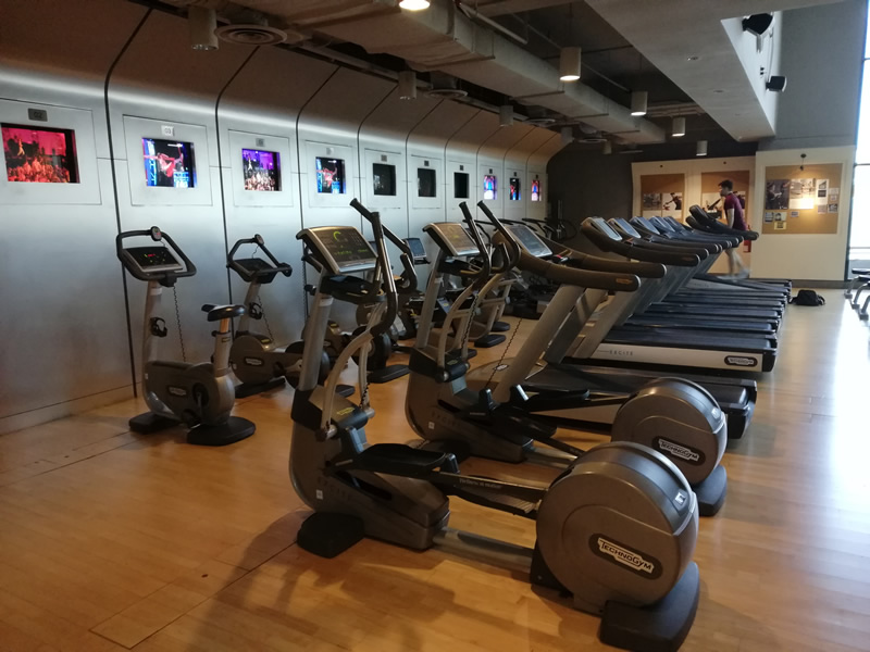 The first thing that struck me here is that the aircon is working – literally perfectly. Both the gym and the studio were an ideal workout temperature. This modern attractive club is set over two floors, with an open-plan main gym on one floor, along with the cycling studio. Upstairs hosts the main group fitness studio, functional training and stretching area, as well as a martial arts area. This included boxing equipment and three wing chun stations. Each floor is logically laid out, so it’s easy to find what you want.