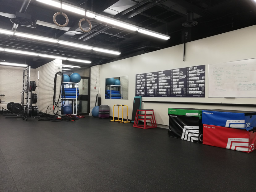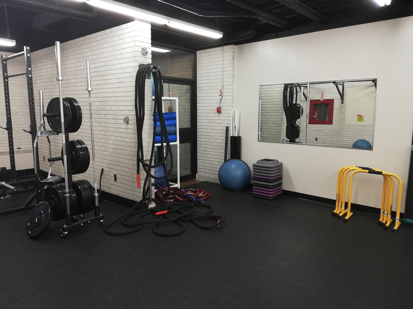 The YMCA Saskatoon gym has a spacious synergy area and a large dedicated area for floor work and functional training. Gym toys include a range of medicine balls, Swiss balls, BOSUs, kettlebells, TRX’s, good quality mats, plyo boxes of various sizes, foam rollers, ropes and even a couple of stepboards.