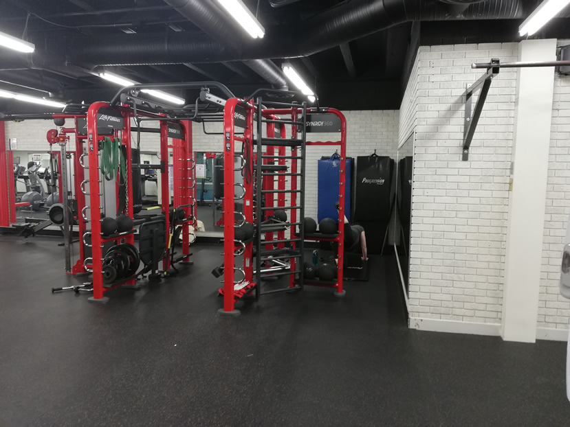 You’ll find a Smith machine, squat rack and several adjustable barbells and both inclined and flat benches, in addition to the fixed weight barbells, which ranged from 30lbs to 110lbs. I also noticed a good range of kettlebells from 15 – 45lbs each and numerous discs up to 45lbs.